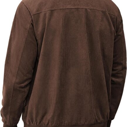 Men’s Casual Suede Bomber Jacket Lightweight Full Zip Up Jackets Vintage Faux Leather Jacket